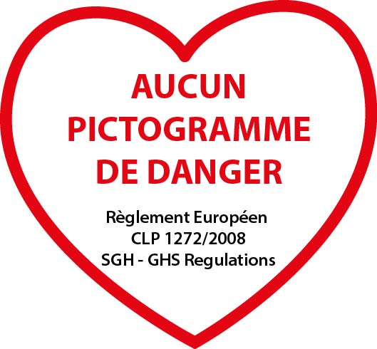 SANS PICTOGRAMME DE DANGER RISQUE 0 100% SAFE Non dangereux pour l'homme et l'environnement. Sans solvant, sans composés organo-volatils. Sans pictogrammes de danger. Sans phrases de risque. Sans valeurs limites ou moyennes d'exposition (VLE - VME). Sans risque d'irritation, de gerçures ou de dessèchement de la peau.